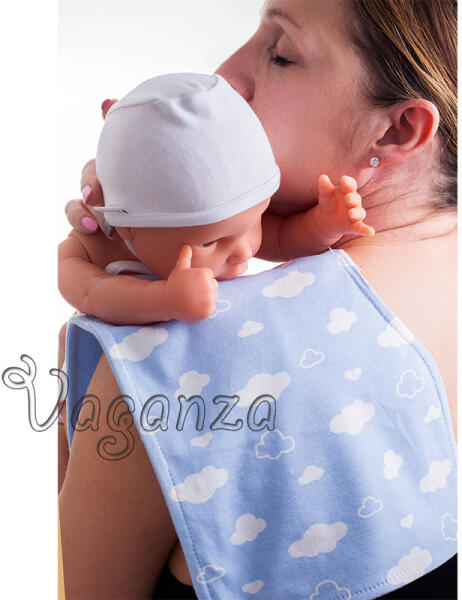 Vaganza Kerekített nyálkendő, mintás Patenttal záródik, állítási lehetőséggel. Az egyik oldala frottír, a másik pamut. Anyagában mintás.