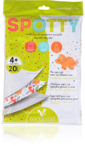 Valami hiba lehetett, mert a rendelkezésre álló információ nem egyezik a termékcímmel. A termékcím alapján ez egy SPOTTY eldobható előke 20db-os csomag, amit az étkezések során lehet használni a babák ruhájának védelme érdekében. A pöttyös mintával ellátott előkék vidámak és praktikusak, könnyen kezelhetőek és eldobhatóak, így a szülőknek nem kell mosogatniuk