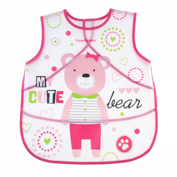 A vízálló állvédő megvédi a gyermek ruházatát étkezés vagy játék közbeni szennyeződéstől. Nagy zsebbel van felszerelve, amely megfogja a morzsákat és a felesleges ételeket. Puha és könnyen mosható anyagból készül. A gyáváknak gyönyörű mintái vannak az állatokkal, amelyek vonzóbbá teszik az étkezést. Az állpánt egyszerűen tépőzárral van rögzítve.