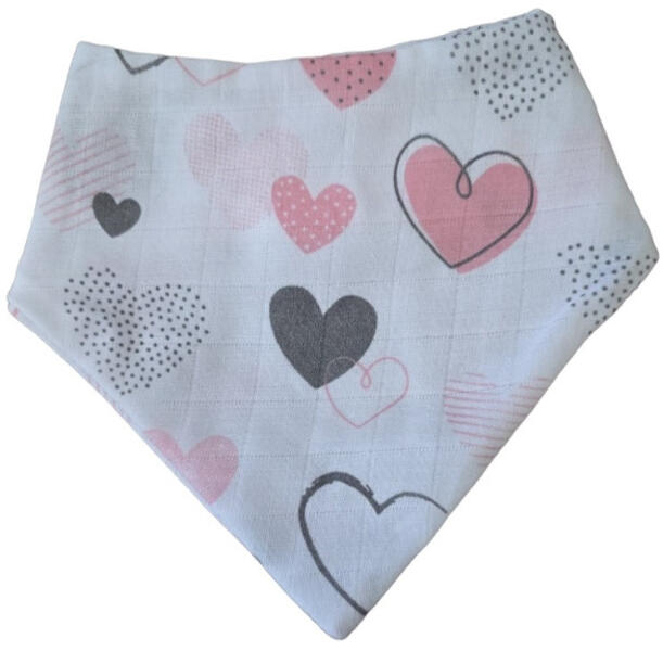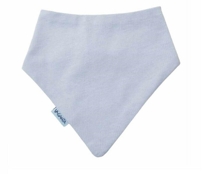 Vaganza Háromszög alakú nyálkendő, vízhatlan. Patenttal záródik, állítási lehetőséggel. Az egyik oldala vízhatlan, a másik pamut.