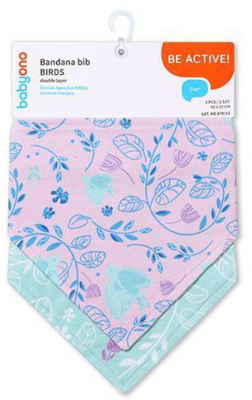 Két rétegű nyálkendő, amely nem csak megvédi a gyermek ruháját a a bepiszkolódástól, hanem divatos kiegészítőként is szolgálhat. Patenttal zárható. 100% pamutból készült. Mérete:42x21 cm Márka: Babyono A csomagban 2 db nyálkendő van.