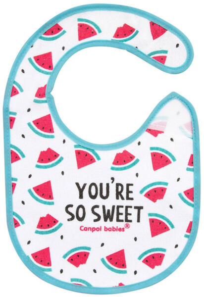 Canpol mintás előke kiváló minőségű frottír pamutból készül. Alsó része vízálló anyaggal van bélelve, ami vízállóvá teszi az előkét, és megvédi a ruhákat a koszolódástól. A praktikus tépőzáras zár kényelmes használatot biztosít, a színes motívumok pedig szórakoztatóvá teszik az étkezést a baba számára. - 3 hónapos kortól- Puha és kényelmes tépőzá