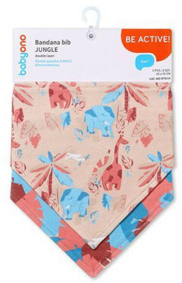 Két rétegű nyálkendő, amely nem csak megvédi a gyermek ruháját a a bepiszkolódástól, hanem divatos kiegészítőként is szolgálhat. Patenttal zárható. 100% pamutból készült. Mérete:42x21 cm Márka: Babyono A csomagban 2 db nyálkendő van.