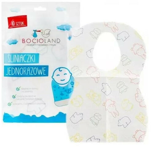 10 db-os eldobható előke, morzsafogó zsebbel, öntapadós ragasztóval a könnyű rögzítés érdekében. Anyaga nem szőtt textília, papír és PE vízhatlan filmréteg