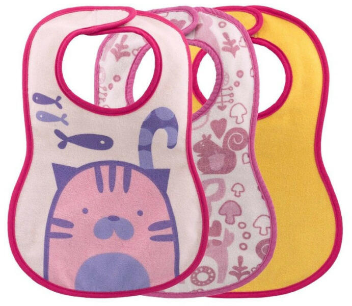Chicco Easy Meal Bib frottir előke vízálló hátlappal első szilárd étel étkezések, 6m+ 3 db-os Lány EASY MEAL BIB Kiszerelés: 3 db/csomag Javasolt életkor: 6hó+, az első szilárd étel etetésektől. Könnyen mosható, vízálló hátlap, elöl mintás frottír anyag, tépőzáras rögzítés. Egyik oldal frottír, másik oldal vízhatlan anyag. Puha pamut anyaga jól elnyeli a folya