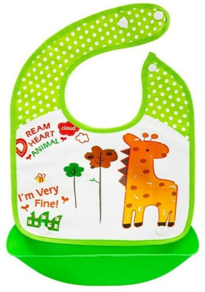 Ajánlott: 6 hónapos kortól. Kiváló minőségű, 100% pamut frottír anyag. A vízálló réteg védi a ruhát a szennyeződéstől és a nedvességtől. Kényelmes és praktikus tépőzáras rögzítés. Mérete: 23 x 37 cm Alapanyag: külső réteg 76% pamut 24% poliészter, vízálló réteg: 100% EVA Súlya: 0,05 kg A rendelt színt a megjegyzés mezőbe kérjük feltüntetni!