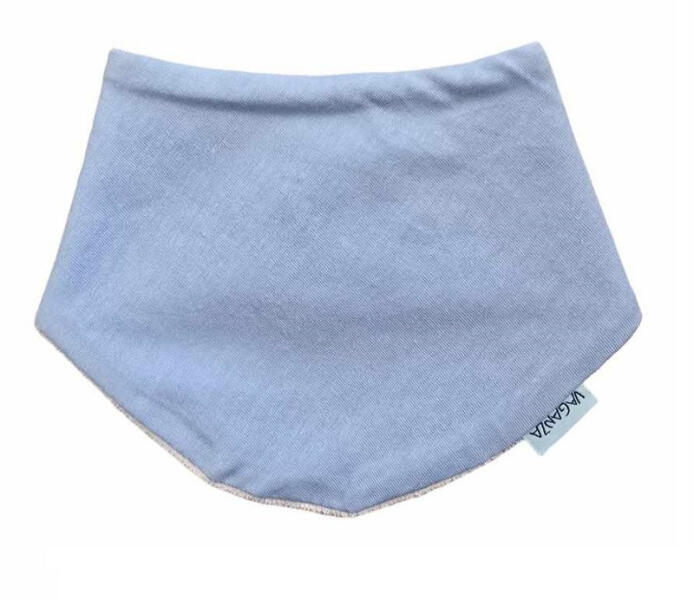 Vaganza Háromszög alakú nyálkendő, vízhatlan. Patenttal záródik, állítási lehetőséggel. Az egyik oldala vízhatlan, a másik pamut.