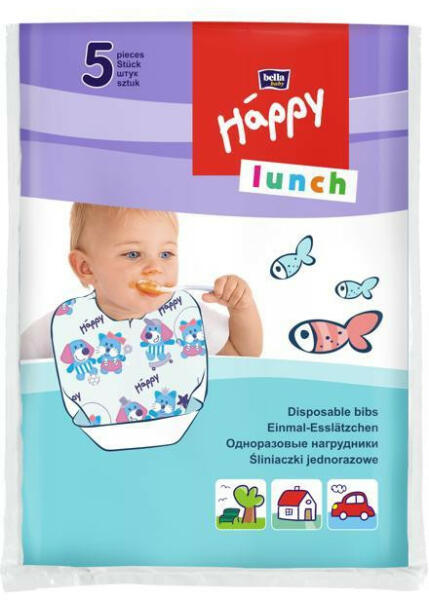 A Happy Lunch eldobható előke tökéletes alternatívája a szövet előkéknek. A külső nedvszívó, nem szőtt szövetréteg a hátsó fóliaréteggel együtt tökéletesen védi a baba ruháját a szennyeződéstől. a speciális összehajtható zseb extra védelmet nyújt - felfogja a kis evőről leeső nagyobb ételdarabokat. A belső oldalon található két öntapadó szalag finoman ta