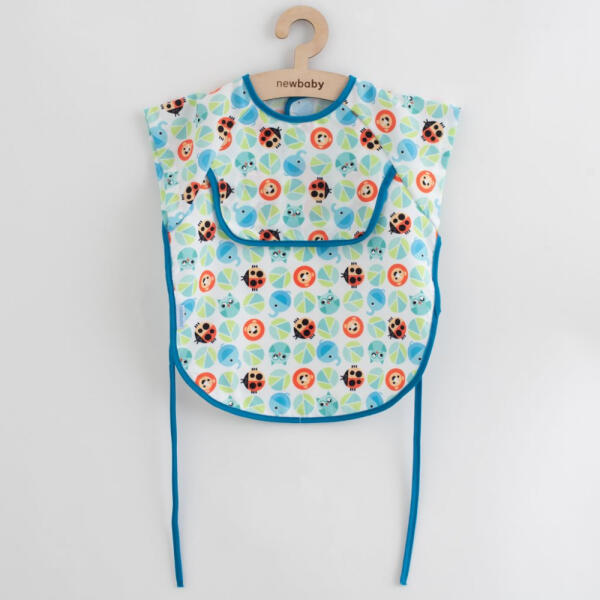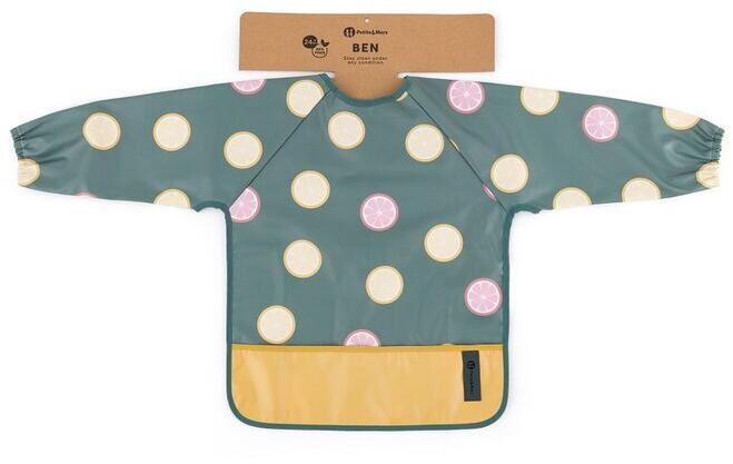 Tisztaság bármilyen körülmények között! Kényelmes, vízálló, hosszú ujjú előke, amely gyorsan száradó, biztonságos PU anyagból készült, teljesen PVC és ftalátmentes. Az elülső morzsazsák rendet és kényelmet biztosít etetés közben, a hosszú, gumis ujjvégek pedig megvédik a ruházatot a szennyeződéstől és a nedvességtől. Az előke nagyon puha tapintású, és pu