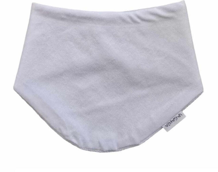 Vaganza kerekített nyálkendő, vízhatlan Patenttal záródik, állítási lehetőséggel. Az egyik oldala vízhatlan, a másik pamut.