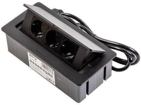 GTV Asztalba süllyeszthető irodai elosztó, IP20, 3x (2P+F), fekete, SCHUKO, 1,5 m kábellel (GTV-AE-PBSC3GS-20N) Termékinformáció: Rejtett gombbal nyitható Anyaga: aluminium Méret: 240 x 120 mm Beépítési méret: 227 x 73 mm Névleges feszültség: 220-240V/AC Névleges frekvencia: 50-60Hz Max. terhelhetőség: 3600W Aljzatok száma: 3 db Aljzatok típusa: SCHUKO (2P+F) IP védettség: I