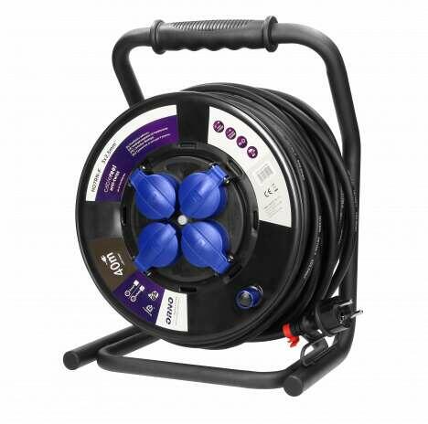 40 m hosszú kábellel. Fém állvánnyal és túlterhelés elleni védelemmel. IP44-es védelem. Hordozása a gumi fogantyú segítségével roppant könnyű. A termék tulajdonságai: A csatlakozóaljzat szabványa: schuko (F típus) Névleges feszültség: 230V~, 50Hz Max. terhelés/áram a feltekert vezetékhez: 1100W / 4,8A Aljzat típusa: 2P+Z Max. terhelés/áram a kihúzott vezetékhez: 32
