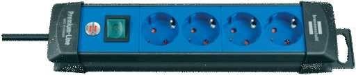 Premium-Line elosztósorPremium-Line elosztósor 4 dugaszhelyes fekete/kék 1,8m H05VV-F 3G1,5Stabil, tetszetős kompakt elosztó rendkívül törésálló, különleges műanyagból. Védőérintkezős dugaszoló aljzatok 45 fokos elrendezésben, amelyek derékszögű csatlakozó dugaszokhoz is alkalmasak. Világítós biztonsági kapcsoló, ami mindkét pólust be- és kikapcsolja. Praktikus ká