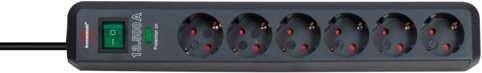 Eco-Line 13.500 A-es túláram védelmi elosztósorEco-Line 13.500A es túláramvédelmi elosztósor 6 dugaszhelyes világosszürke 1,5m H05VV-F 3G1,0Védi az értékes készülékeket a max. 13.500 A elvezető-áramerősségű túlfeszültségtől. Működésellenőrző-lámpa. Világítós biztonsági kapcsoló, ami mindkét pólust be- és kikapcsolja. Dugalj gyermekvédelemmel, praktikus 45°-