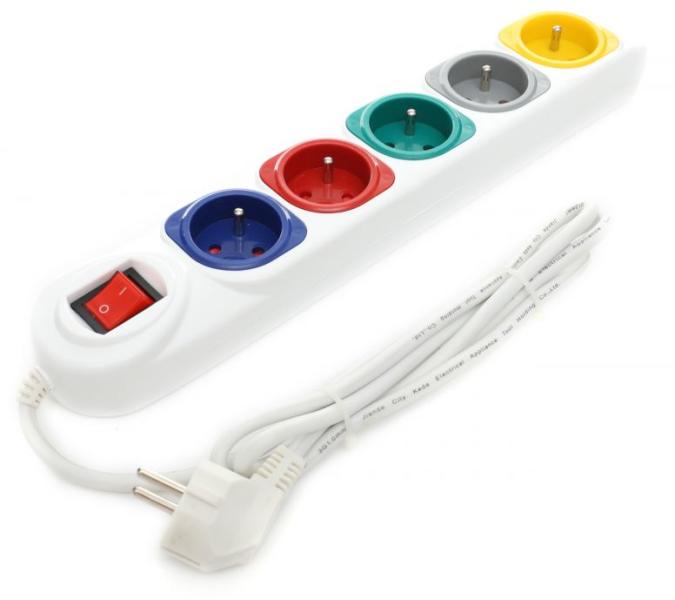 Hosszabbító kábel 1,5 m 5 x aljzat 1 x kapcsoló Hosszabbító kábel 5 aljzattal, 1,5 m hosszúságú kábellel. A hosszabbító vezeték gyermekzárral van felszerelve, amely megakadályozza más tárgyak behelyezését. A teljes hosszabbító a főkapcsolóval kikapcsolható. Technikai paraméterek: Aljzatok száma: 5 Kábelhossz: 1,5 m Szám kapcsolók: 1 Szín: fehér Súly: 0,425 kg