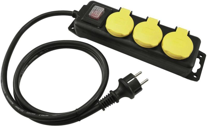 Power distributor With 3 sockets and illuminated, red switch Without child protection With 3 meter connection cable Cable crossection: H05VV-F 3G1.5 mm2