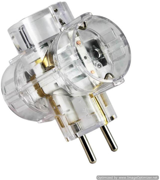 3-way adaptor 16 A 250 V ~, transparent