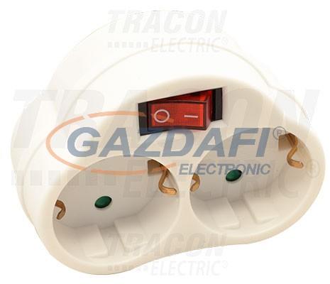 Tracon KACS2, Csatlakozóaljzat adapter kapcsolóval, fehér 250 VAC 16 A 2×SCHUKO, max. 3680 W