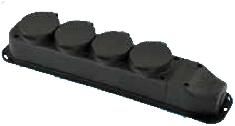 A dobtest különleges műanyagból készülCEE 5-pólusú dugasz, 400 V/16 A, fázisfordító6 dugaszoló aljzat 230 V, önzáró fedéllel, IP 44 védelemmel1 CEE 5-pólusú dugaszoló aljzat, 400 V/16 A