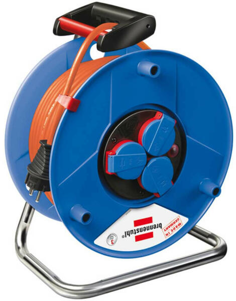 A dobtest különleges gumiból készül, és horganyzott állványra van rögzítveErgonómiai szempontok szerint tervezett tengelyes fogantyú a tökéletes kábelmegvezetéshez a le- és a feltekercselés soránTúlhevülés elleni védelem, ellenőrző lámpa túlhevülés vagy túlterhelés eseténGumidugasz, 3 dugaszoló aljzat önzáró fedéllel