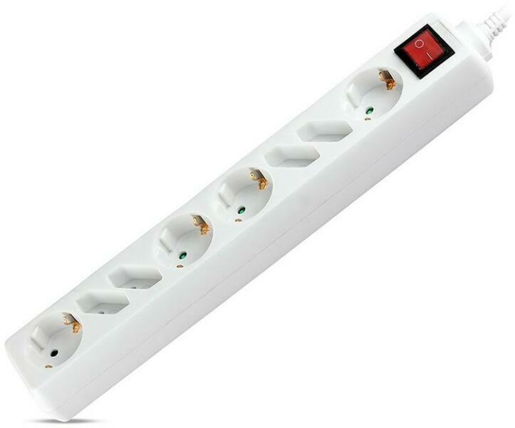 Hálózati elosztó, fehér színben Kapcsolóval és 1,5 méter hosszú csatlakozóval ellátott hosszabbító-elosztó, 4 földelt és 4 földeletlen konnektorral, beltéri használatra. Kisebb helyen több eszközt tud csatlakoztatni!3 eres, 1,5 mm2 keresztmetszetű vezetékkel!Bemeneti és kimeneti áramerősség: 16A.