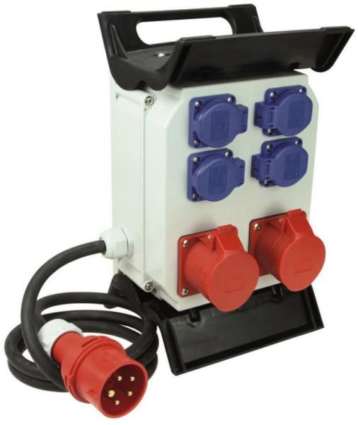 A GAO CEE építkezési elosztó 2x CEE 5 pólusú + 4x 3 pólusú dugalj 400V 16A IP44 0512592555 széles körűen alkalmazható pl. építkezéseken, üzemekben és olyan helyeken, ahol az 5 pólusú hálózati csatlakozás lehetősége adott, de nincs kiépített elosztó. A GAO CEE elosztója könnyen hordozható a tartólábba integrált fogantyúnak köszönhetően. A lábak kialakítása, i