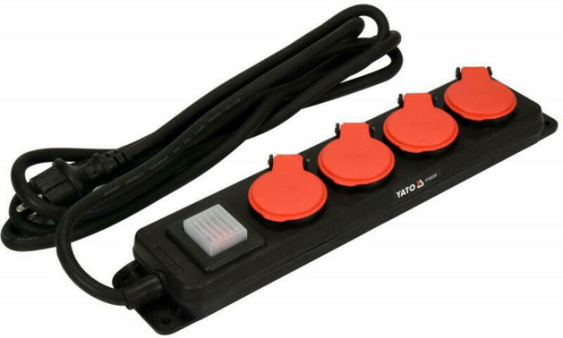 YATO hosszabbító kábel szalag formájában, négy földelt aljzattal. A vastag és tömör kábel neoprén gumi burkolattal azt jelenti, hogy a hosszabbító kábelt beltéren és kültéren is lehet használni, például garázsban, építkezésen, a kertben vagy a gyártóüzemek előtti udvarokon. A szoros és strapabíró ház, valamint a füles formájú aljzatfedelek fröccsenés- és por