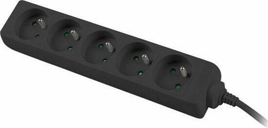 Fekete PremiumCord hosszabbító kábel 5 aljzatos elosztóval. A kábel hossza 5 m.