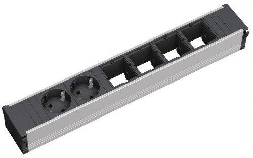 - Hossz: 356 mm - Eloxált alumínium profil - Tápbemenet: 0,1 m kábel és GST18i3 dugó - 2 darab fekete csatlakozóaljzat földelt érintkezővel, beállítva 35 fokban - 4 darab egyedi modulok - A tápkábelek és az egyéni modulok külön kaphatók
