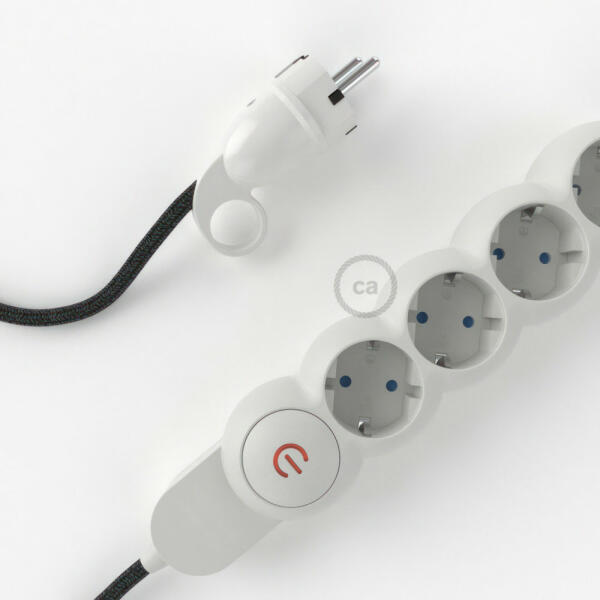 A műselyem borítású, elektromos kábellel ellátott elosztó, az RM10 Creative-Cables nem a szokásos többszörös aljzat! A 4 Schuko/10A aljzat átlósan van elhelyezve a transzformátorok által elfoglalt hely optimalizálása érdekében. A nagy keresztmetszetű kábel (1,5 mm2) 100%-ban Olaszországban készült. A schuko dugó kényelmes gyűrűvel van ellátva, amely nagyon megkönnyít