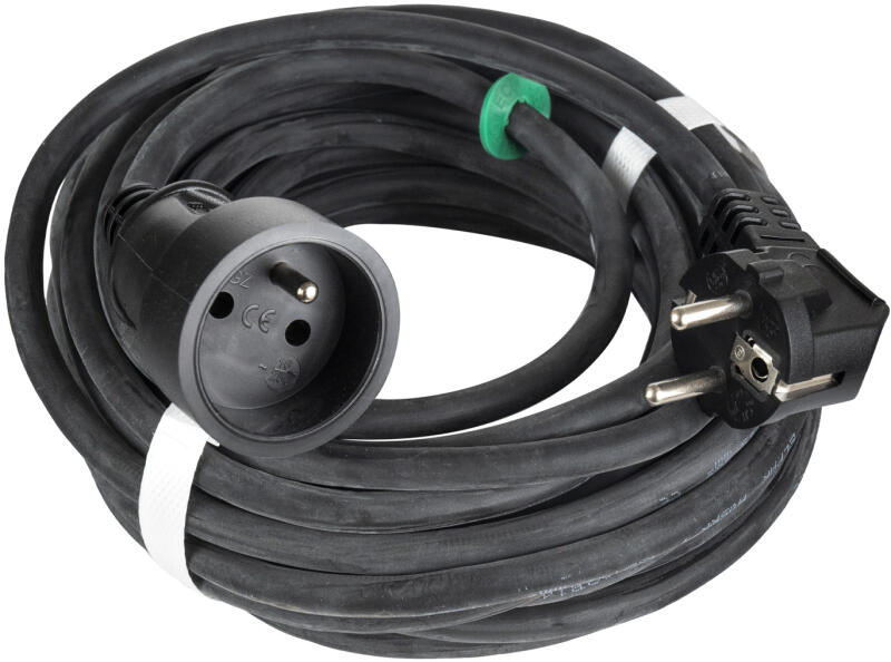 CEE hosszabbító kábel lakókocsikhoz való derékszögű csatlakozóvalA szabadban történő használatra, IP 44. CEE hosszabbító kábel lakókocsikhoz való derékszögű csatlakozóval 10m fekete H05VV-F 3G1,5Különleges gumikábel CEE-dugasszal és zárósapkás csatlakozó aljzattal. 230 V-os hosszabbító kábel, 3-pólusú