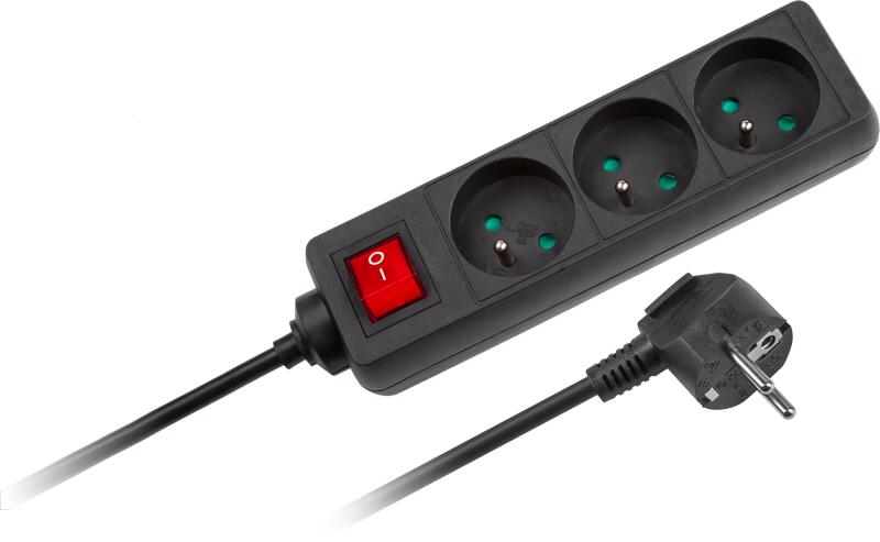 Predlžovacia zásuvka s vypínačom 3m čierna (3 x 1,5mm) Počet zásuviek: 3 Dĺžka prívodu: 3 m Farba: čierna Vypínač: áno Prierez vodiča: 3x1,5 mm Napätie: 230 - 240 V AC 50 Hz Max. prúd: 16 A Max. zaťaženie: 3680 W Pre použitie v interiéri