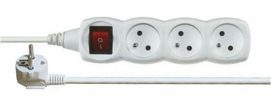 Hosszabbító vezeték kapcsolóval Hossz: 2 m Fiókok száma: 3 Vezeték keresztmetszete: 3 x 1,0 mm2 Illesztőprogram: H05VV-F3G
