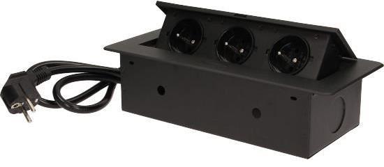 Három darab 2P+Z elektromos aljzatból álló készlet kihúzható felső fedélben. Asztalokba, asztallapokba és íróasztalokba történő belső beépítésre tervezve, függőleges és vízszintes helyzetben egyaránt, hozzáférést biztosítva az elektromos aljzatokhoz. Általános információk: ModellMagasság: 67 mmÖsszecsukható: IgenFiókszabvány: francia (E típus)Maximális terhel