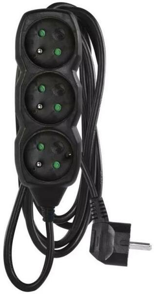 Hosszabbító kábel aljzatokkal. A vezeték keresztmetszete: 1,5 mm2. Vezető: H05VV-F3G. Áram: 16 A max. Max. terhelés: 3680 W. Az aljzatok száma: 3. Hosszúság: 3 m.
