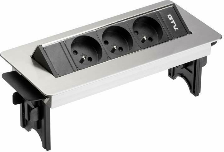 Przedłużacz biurkowy bez kasety 3x gniazdo z uziemieniem kabel 1.5m zasilający z wtyczką inox GTV AE-PBC3GU-51BK