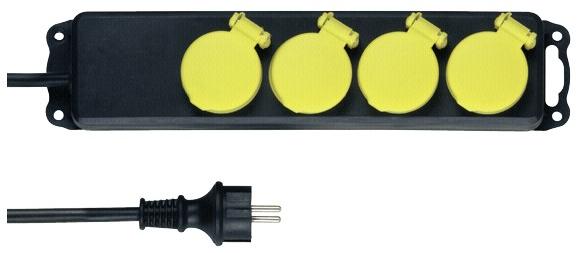 Asztali elosztó kültérre 4-es, 1,4m, 3x1,5mm2, IP44, sárga/fekete Düwi
