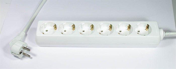 Beltéri elosztó 6 csatlakozó aljazzattal. Kapcsoló nélküli. Kábelhosszúság: 3 m Maximum áramerősség 16A Szín: fehér