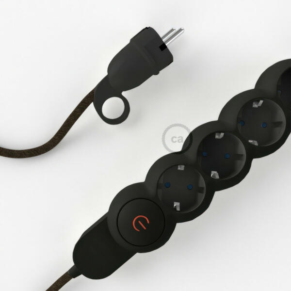 A Brown Natural Linen RN04 Creative-Cables anyaggal borított elektromos kábellel ellátott elosztó nem az Ön szokásos többszörös aljzata! A 4 Schuko/10A aljzat átlósan van elhelyezve, hogy optimalizálja a transzformátorok által elfoglalt helyet. A nagy keresztmetszetű kábel (1,5 mm2) 100%-ban Olaszországban készült. A schuko dugó kényelmes gyűrűvel van ellátva, amely nagyon