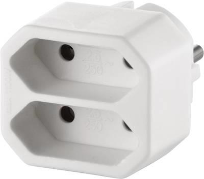 Többfunkciós dugó, 2 részes, fehér Alkalmas euro dugó, hagyományos 230 V/AC védőérintkezős dugaljhoz való csatlakoztatására. Műszaki adatok: Euro csatlakozók száma: 2 · Gyermekvédelem: Nem · Méret, hossz: 62 mm · Méret, magasság: 43 mm · Méret, szélesség: 37 mm · Névleges feszültség: 230 V V · Névleges áram: 2,5 A · Szín: Fehér · Típus: Dugalj elosztó