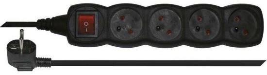 Hosszabbító kábel kapcsolóval – 4 dugalj, 3m, fekete3m-es 230 V~ hosszabbító kábel, amellyel konnektortól távoli helyeken is megoldható az áramellátás. e. Technikai paraméterek:max. terhelés: 2 300 Wszigetelés típusa: PVCvezeték: H05VV-F3G 1 mm?gyerekzár: igenfeszültség/áram: 250 V~/10 A max. dugalj és dugvilla anyaga: műanyaghossz: 3 mdugalj-szám: 4× 2P + PEszín: feke