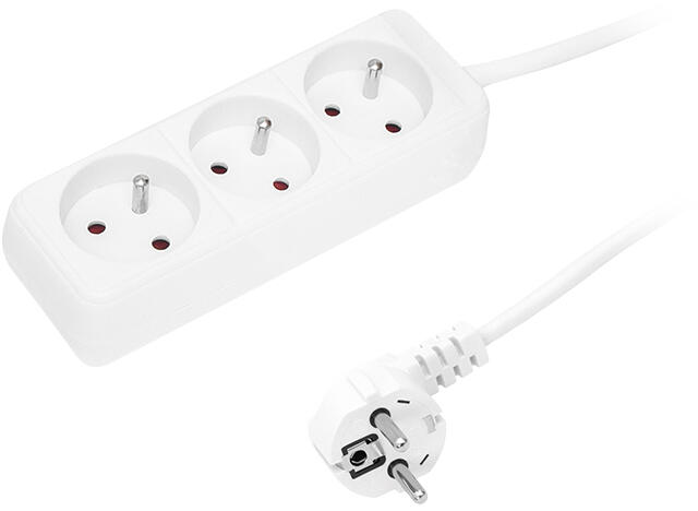 PR-370P hálózati hosszabbító kábel ferde hálózati dugóval és 3 földelt aljzattal. - Modell: PR-370P- Vezetékek: 3 x 1,5 mm- Teljes hossz: 5 m- Kábelhossz: 4,8 m- Dugó: hálózati dugó, szögletes- Aljzatok száma: 3- Földelés: igen- Kábel színe: fehér- Csomagolás címkével