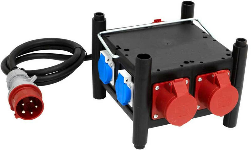Stabil, fémből készült hordozó fogantyú 1 életvédelmi hibaáram-védőkapcsolóval (FI) és 2 biztosító automatával Földelt dugalj 2 külön fázisra osztva Tároló-dugalj