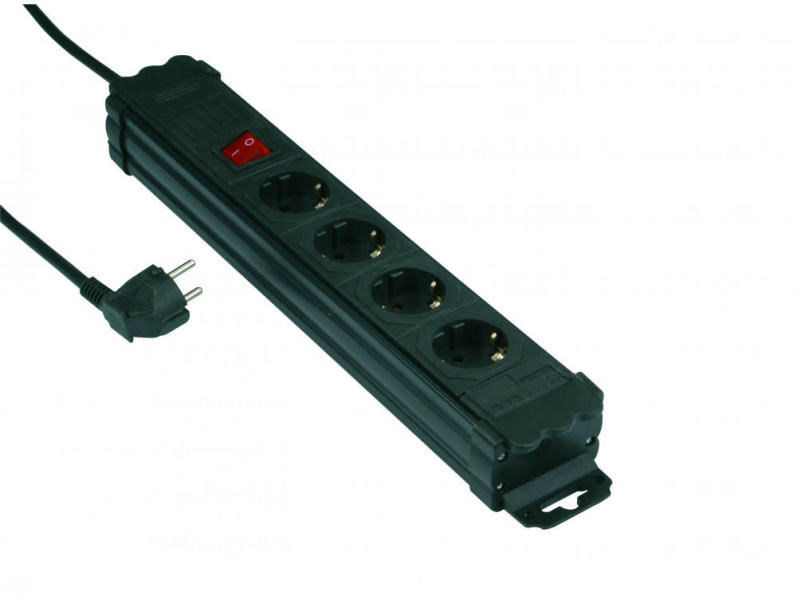 Szerelhető asztali elosztó kapcsolóval 4-es gyermekvédelemmel, 10/16A, 250V, 3x1,0mm2, 2m, fekete