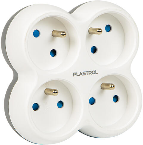 Funkcionális négyszeres elosztó, négy kerek aljzattal, földeléssel. osztó paraméterei: feszültség: max. 250Vterhelés: max 16A ~ 3680W