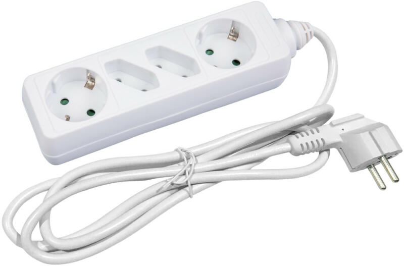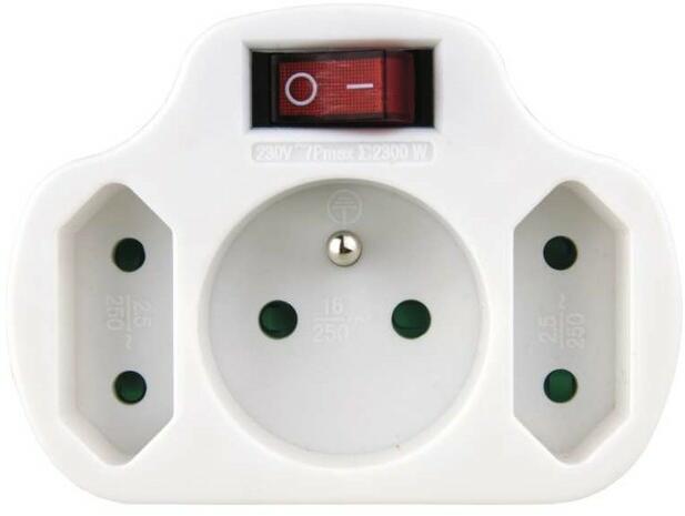 Elosztó aljzat 2× lapos +1× kerek kapcsolóval, fehérPraktikus csatlakozóaljzat-elosztó fehér kivitelben. Az elosztó segítségével egyszerre több készüléket csatlakoztathat. Külön előnye, hogy a kapcsolóval gyorsan és egyszerűen megszakíthatja a csatlakoztatott készülékek áramellátását. Technikai paraméterek:max. terhelés: nincs megadvaeasy learning: nemjel hatótávo