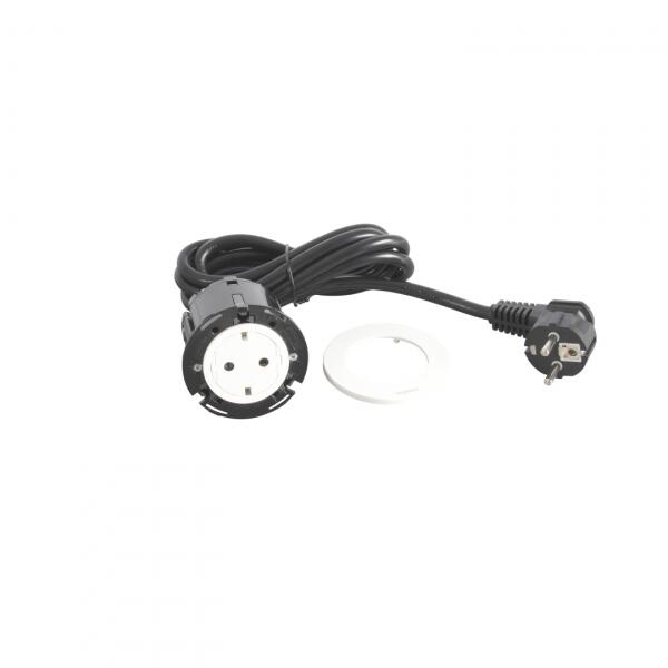 2P+F süllyesztett csatlakozóaljzat Tulajdonságok: 2 méter kábellel és 2P+F csatlakozódugóval 16 A 250 VA 50/60 Hz A csatlakozóaljzatok telepítése kifejezetten bútorba ajánlott, biztonsági zsaluval ellátott Megfelel az IEC 60881-1 szabványnak Fehér Bútorba süllyesztett beépítéshez Ø60 mm-es átmérőjű kivágás szükséges. Három telepítési mód: Süllyesztett beépíté