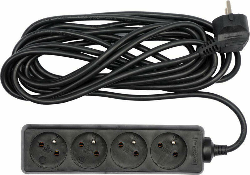 Klasszikus földelt hosszabbító négyes dugallyal, műanyag aljzatburkolattal, kábel hossza 1,5 m Max. áram: 16 A Feszültség: 230 V váltakozó áram Frekvencia: 50 Hz Aljzat típusa: C Dugó típusa: C Földelés: Igen Aljzatok száma: 4 Kábel szigetelés típusa: H05VV-F A kábel keresztmetszete: 3Gx1 mm2 Szín: fekete Hosszúság: 1,5 m Kapcsoló: nincs