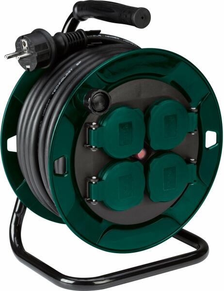 A CMI fekete kábeldobja IP44 védelmi osztályának köszönhetően rövid ideig használható szabadtéren is, például kerti gépek vagy fűnyíró hálózati csatlakoztatására A lefutásféknek köszönhetően a 10 méternyi kábel gond nélkül tekerhető le vagy fel. A kábeldob négy védőérintkezős, gyerekzáras csatlakozóaljzattal lett felszelve, melyek oldalt találhatók. Ellátt