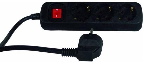 Hosszabbító kábel aljzatokkal és kapcsolóval. A vezeték keresztmetszete: 1,5 mm2. Vezető: H05VV-F3G. Áram: 16 A max. Max. terhelés: 3680 W. Az aljzatok száma: 5. Hossza: 3 m.